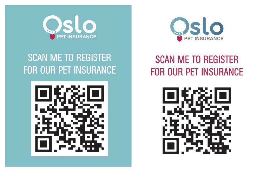 Share this QR code with pet parents to quickly register for Oslo pet insurance